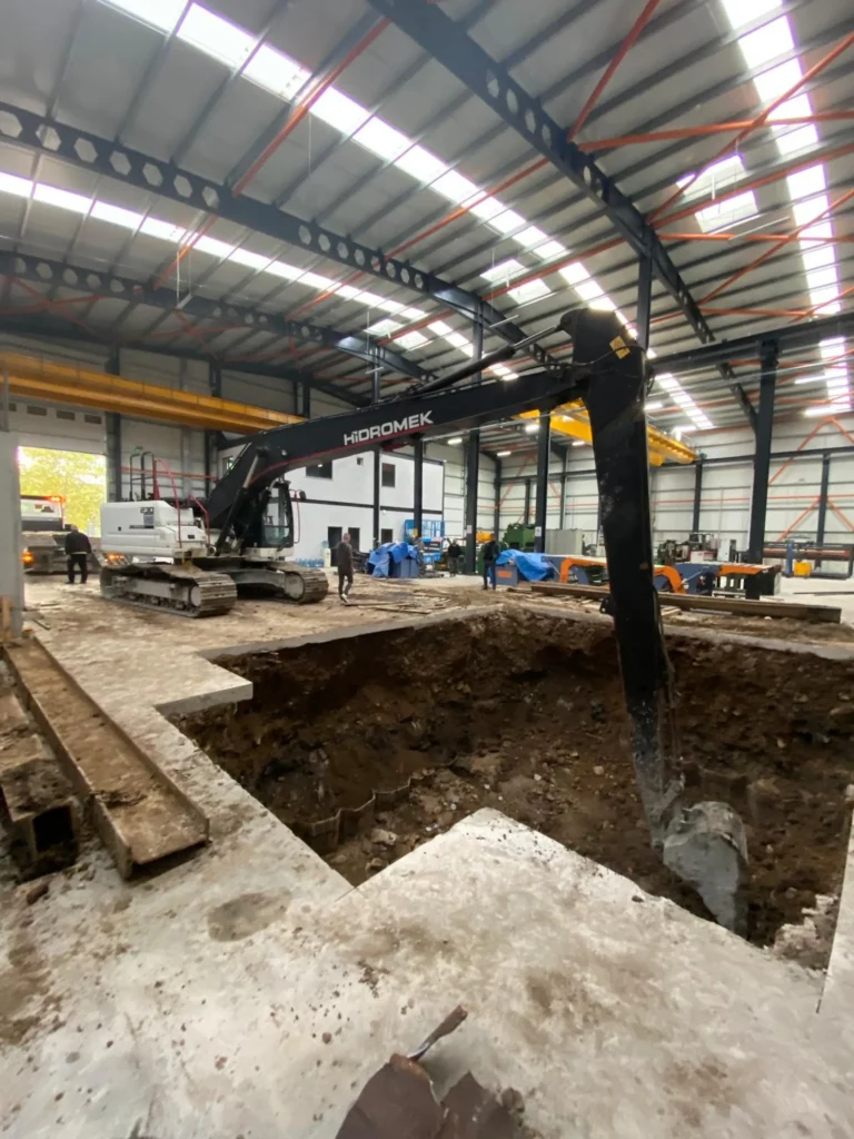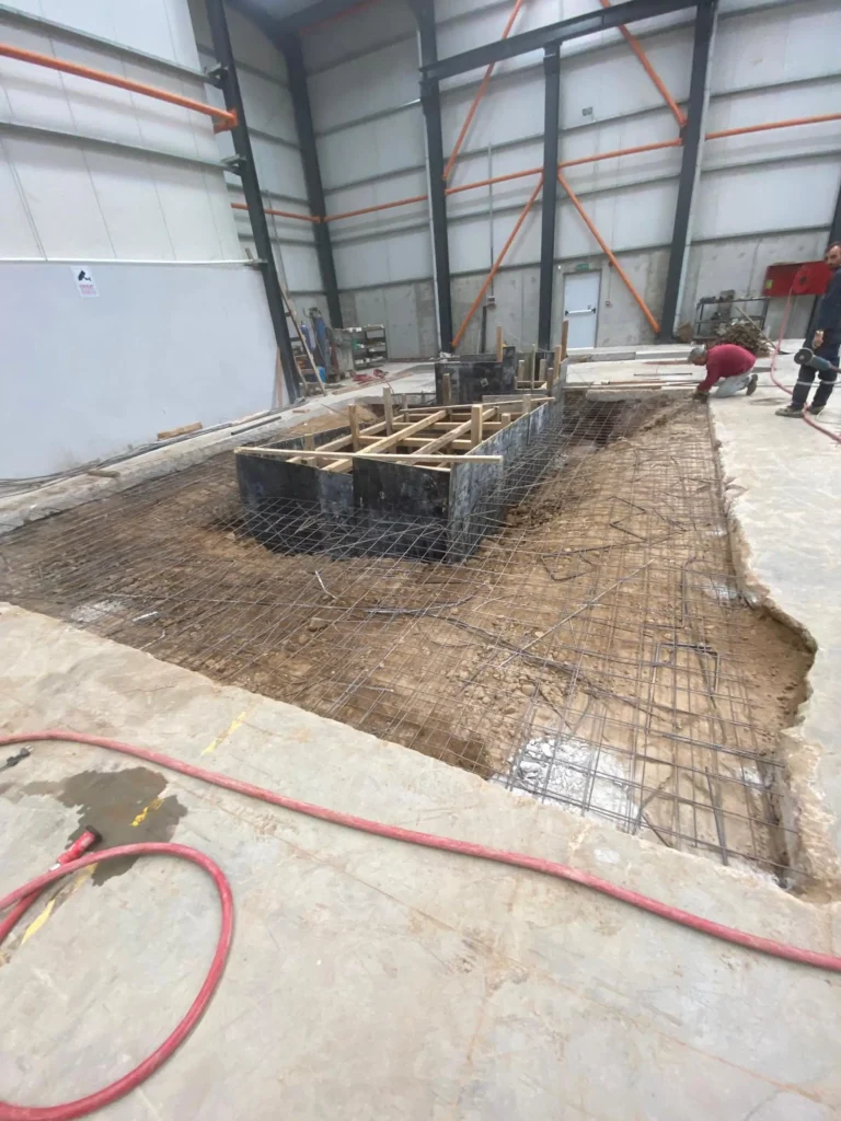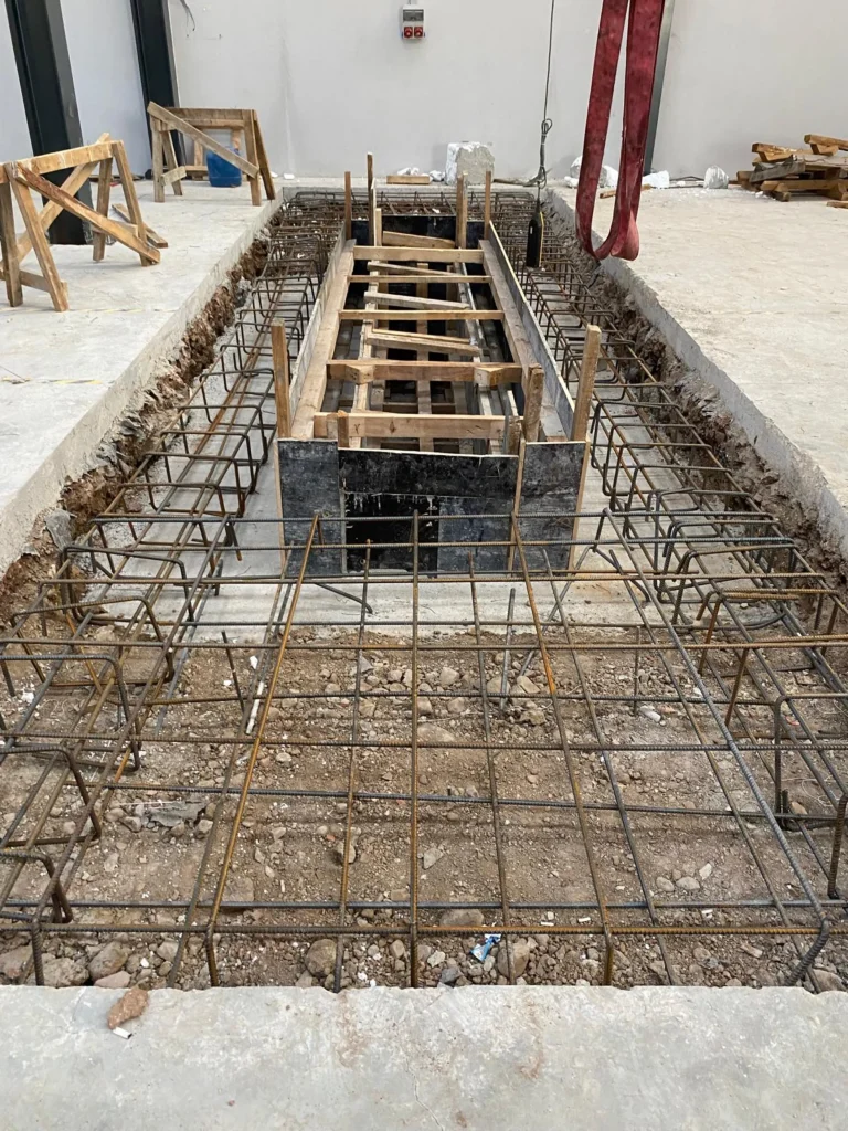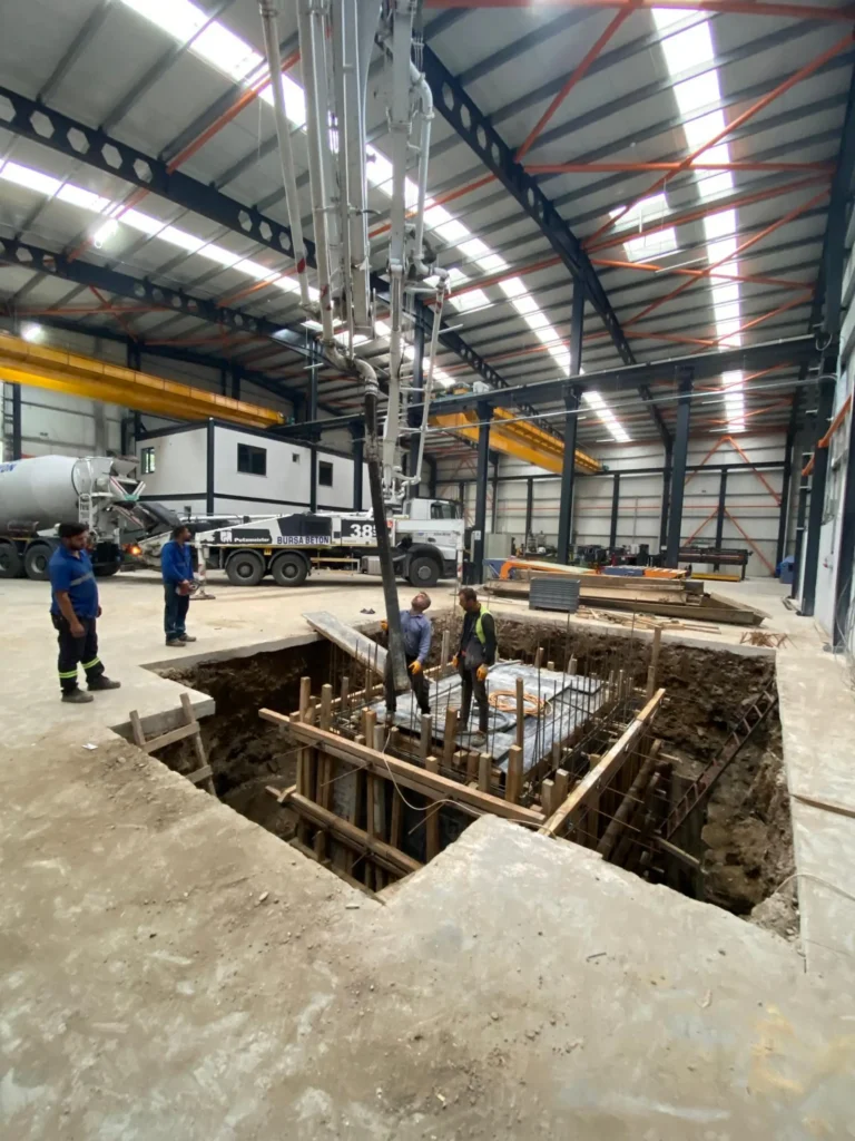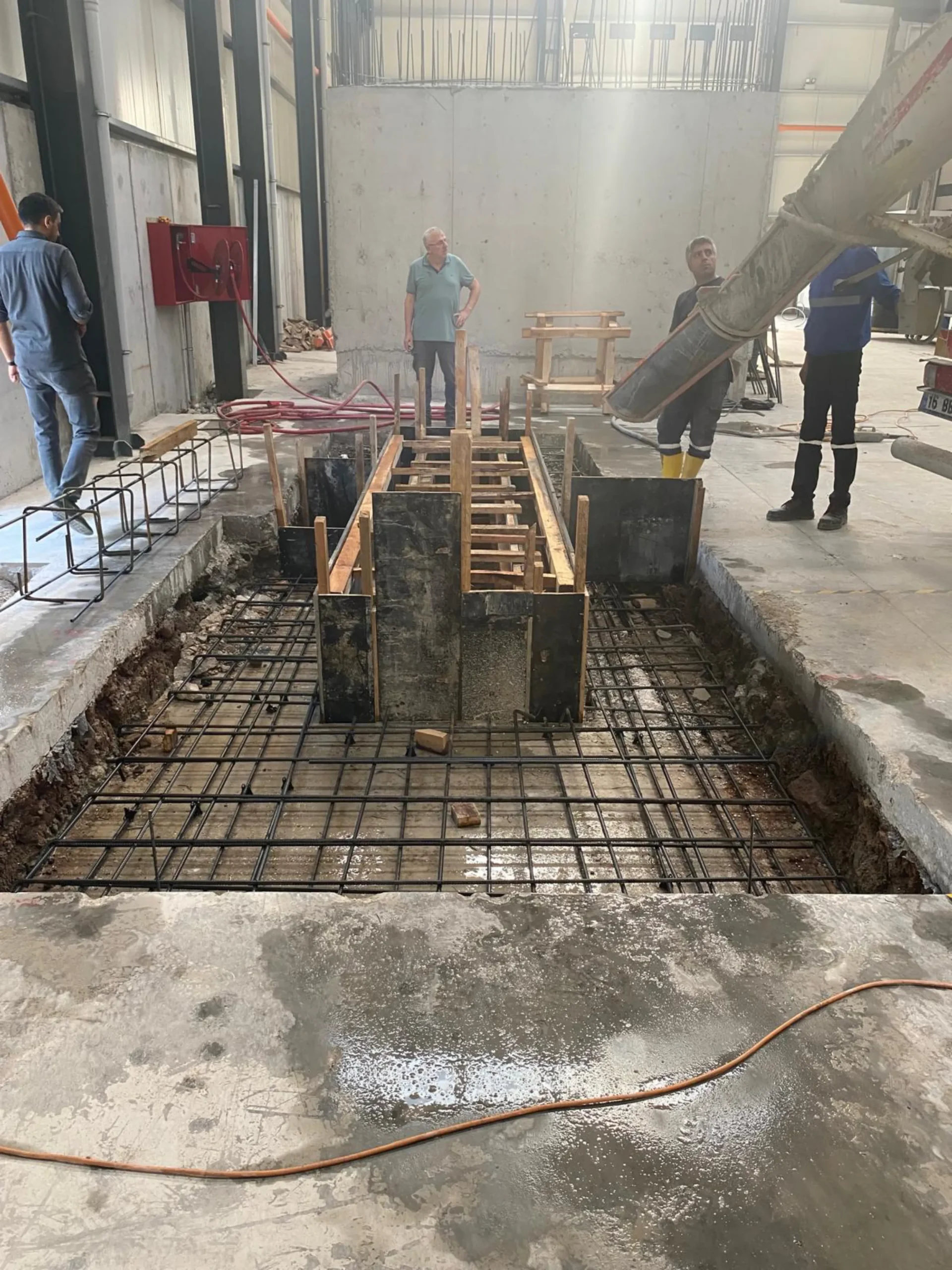 2000 m2 fabrika alanı içinde rulo sac işleme tesis makine temelleri, 9 MT derinliğinde rulo dönme çukuru kazı, iksa , betonarme ve çeşitli çelik konsrüksiyon işleri yapılmıştır.