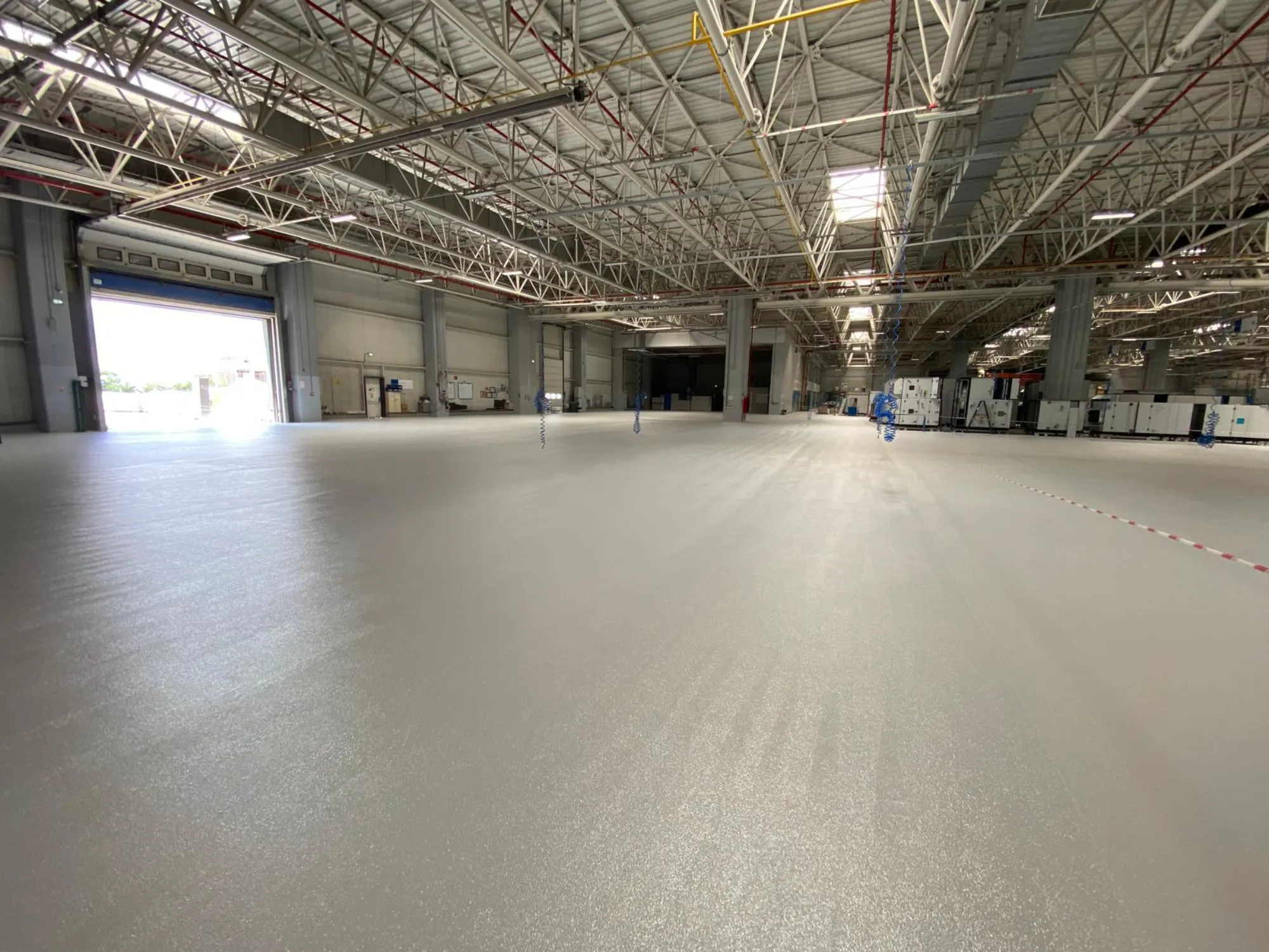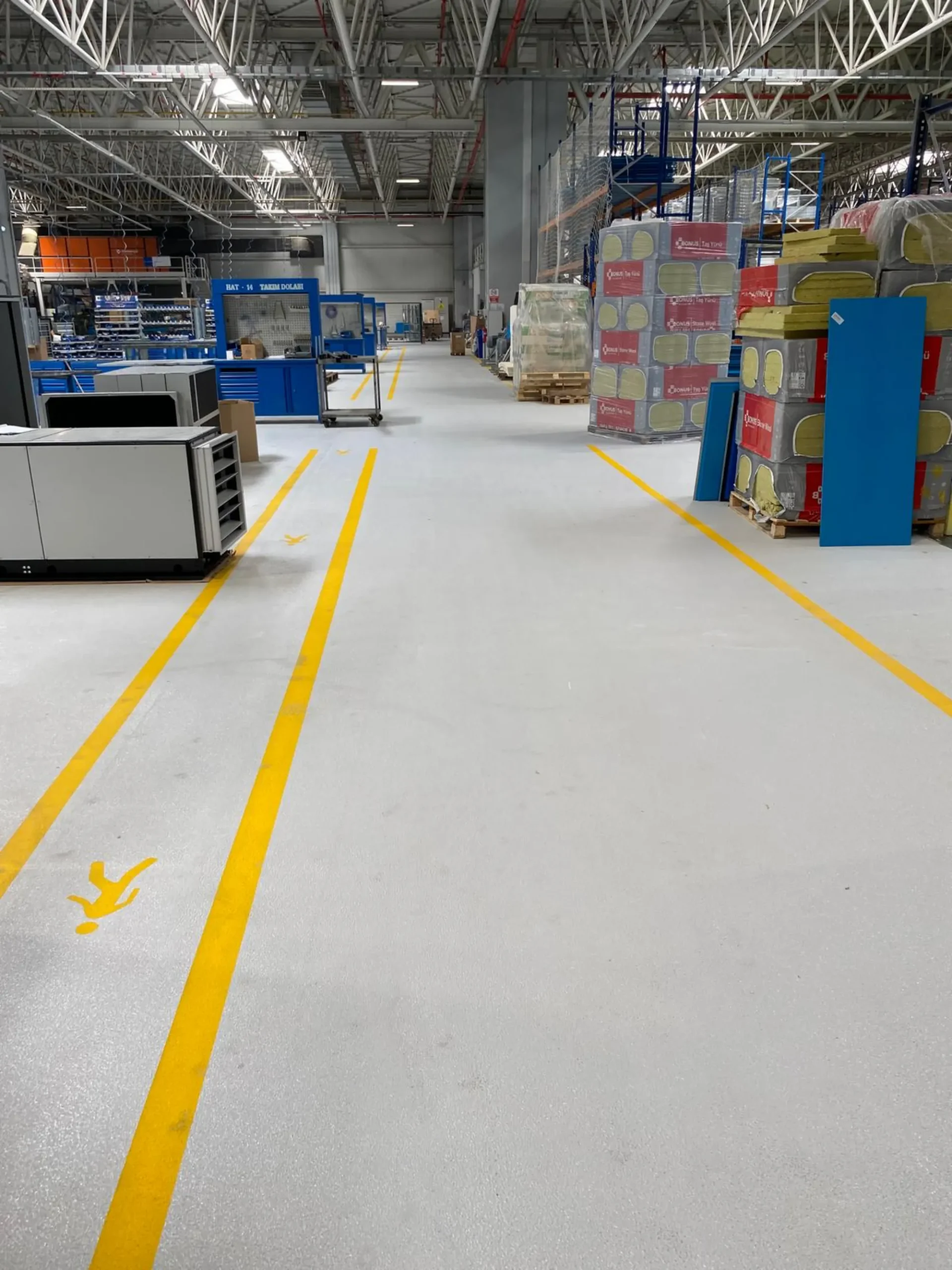 Üretim devam ederken fabrika yönetimi ile planlı bir program ile 10,000 m2 EPOKSİ ZEMİN KAPLAMA İŞİDİR.