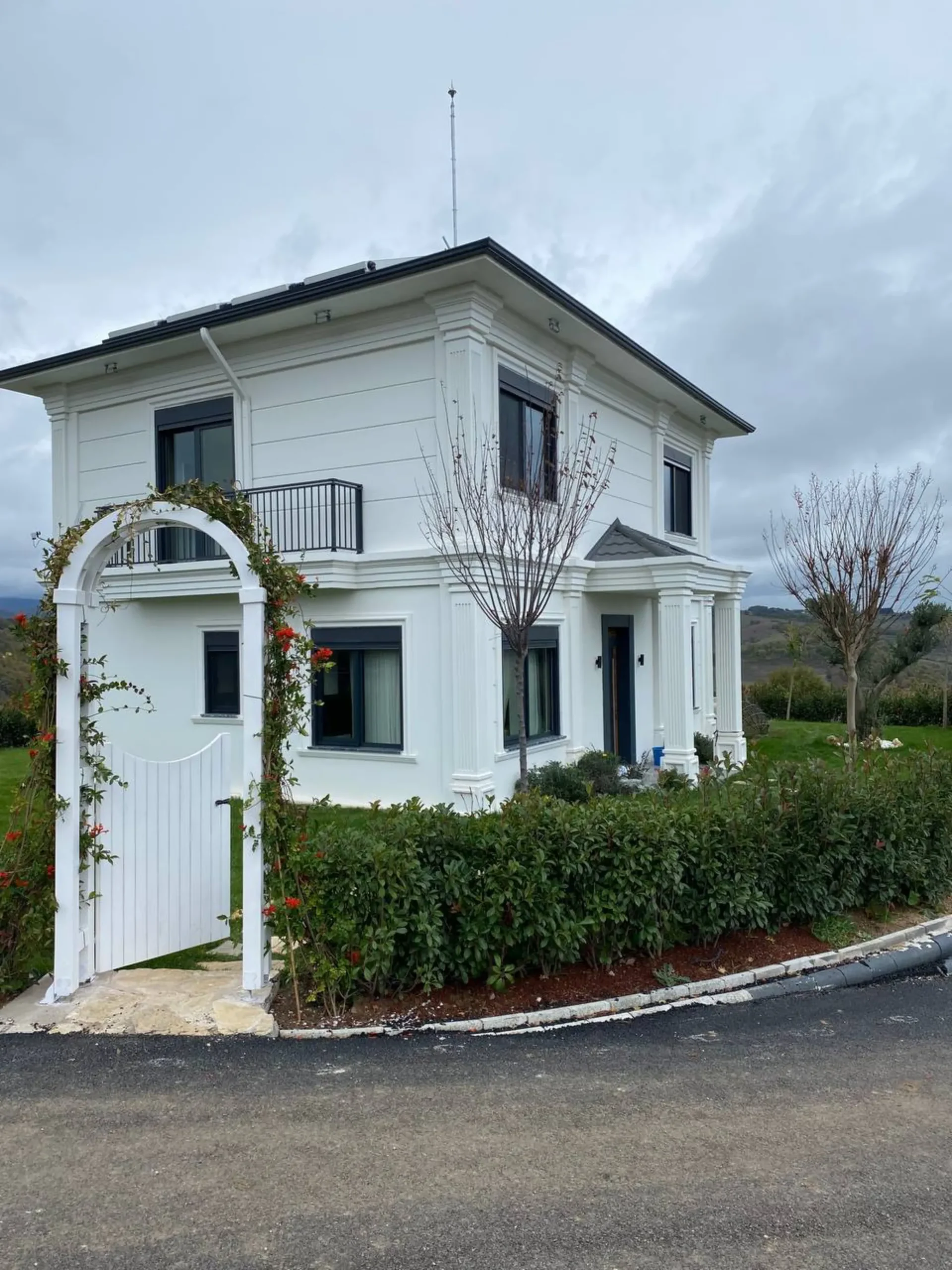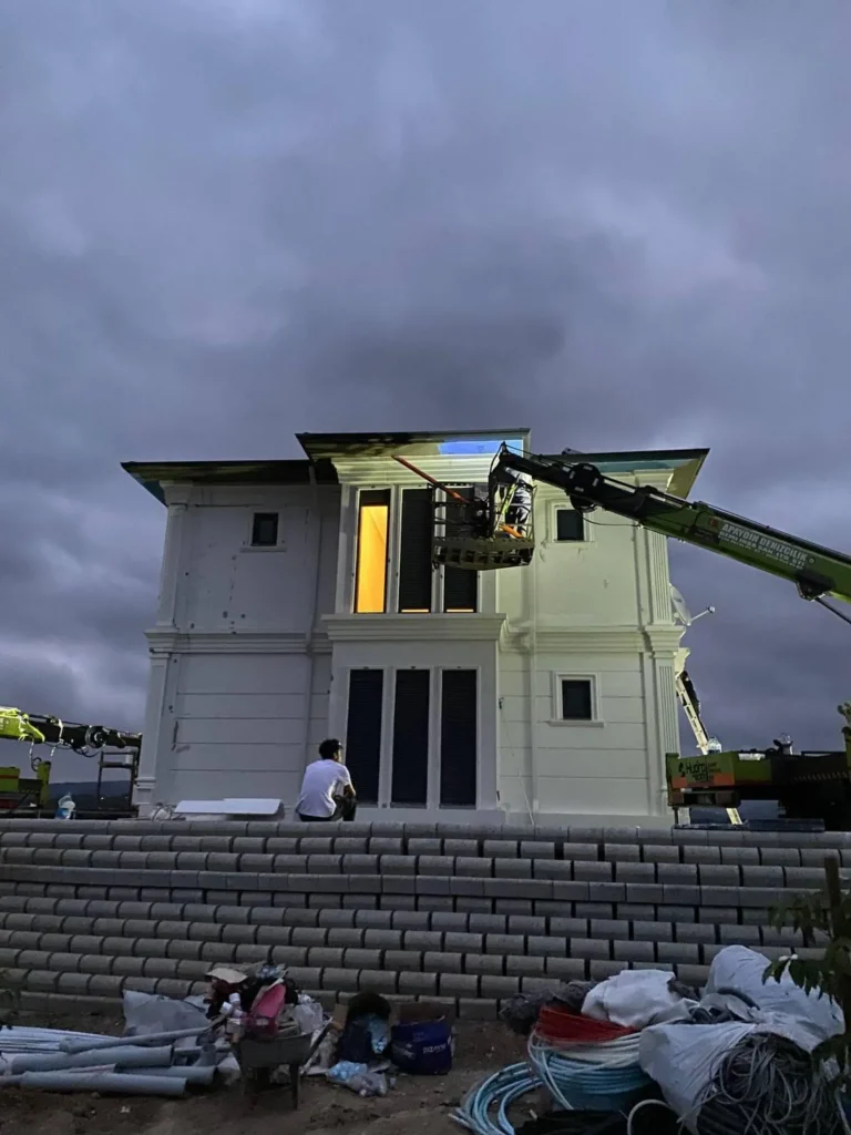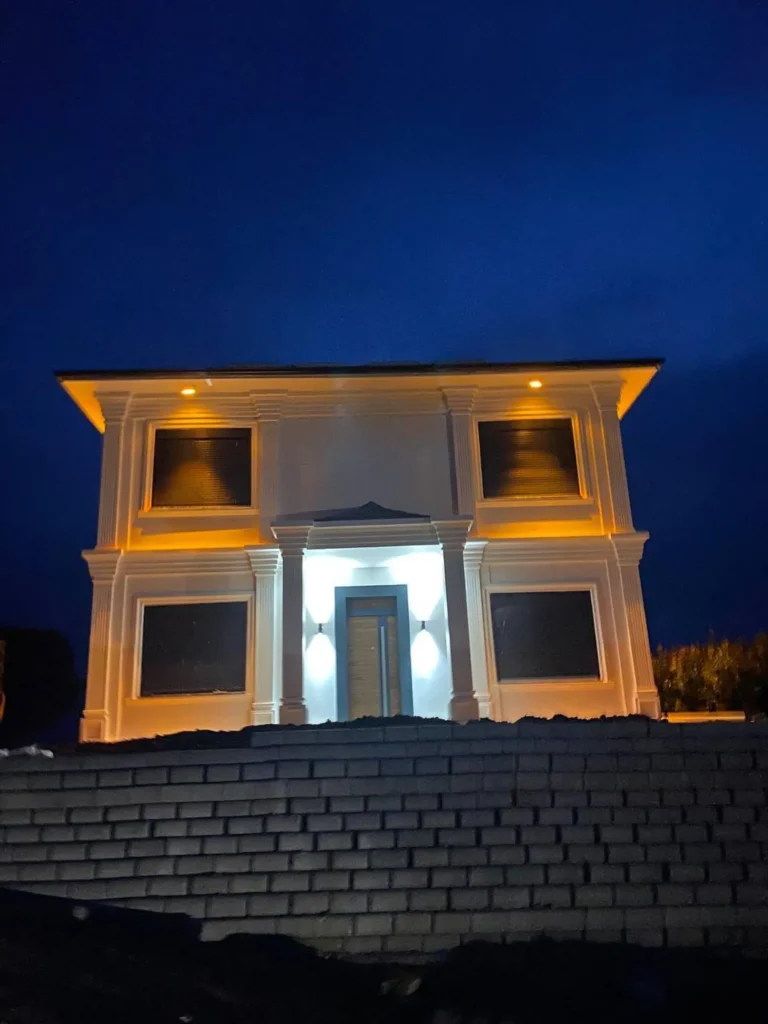 250 m2 prefabrik hibrit bina yapım işidir. İşin kapsamında ; 420 mt derin zemin sondajı yapılarak başlanan projede toprak altına 1700 mt PPrc boru döşenmiştir. Bu borular ile toprak ısısından yararlanarak binanın ısınma ve soğutma ihtiyacı karşılanması planlanmıştır. Betonarme temel üzerine çelik ankrajlar konularak fabrikada üretilmiş olan 25 cm kalınlığındaki katmaları arasında ısıtma ve soğutma boruları bulunan çelik konsrüksiyon beton duvarlar ile bina kısa sürede oluşturulmuştur. Çelik konsrüksiyon sayesinde yüksek sağlamlığa sahiptir. Son derece yalıtımlı olan prefabrik beton duvarlar binaya yüksek ısı yalıtımı sağlamaktadır.  Ayrıca çatıya konulan güneş panelleri yardımıyla sıcak su ihtiyacı karşılanmıştır. Yapılan makine dairesine konulan ısı pompası yardımıyla binanın duvarları arasına yerleştirlmiş su boruları içerine pompalanan ısıtılmış/ soğutulmuş su ile konforlu bir ortam sıcaklığı sağlanmıştır. Binanın ısıtma ve soğutma sistemi bu hibrit sistem sayesinde toprak ısısı, güneş enerjisi  ve elektrik enerjisi desteği ile yapılmaktadır.